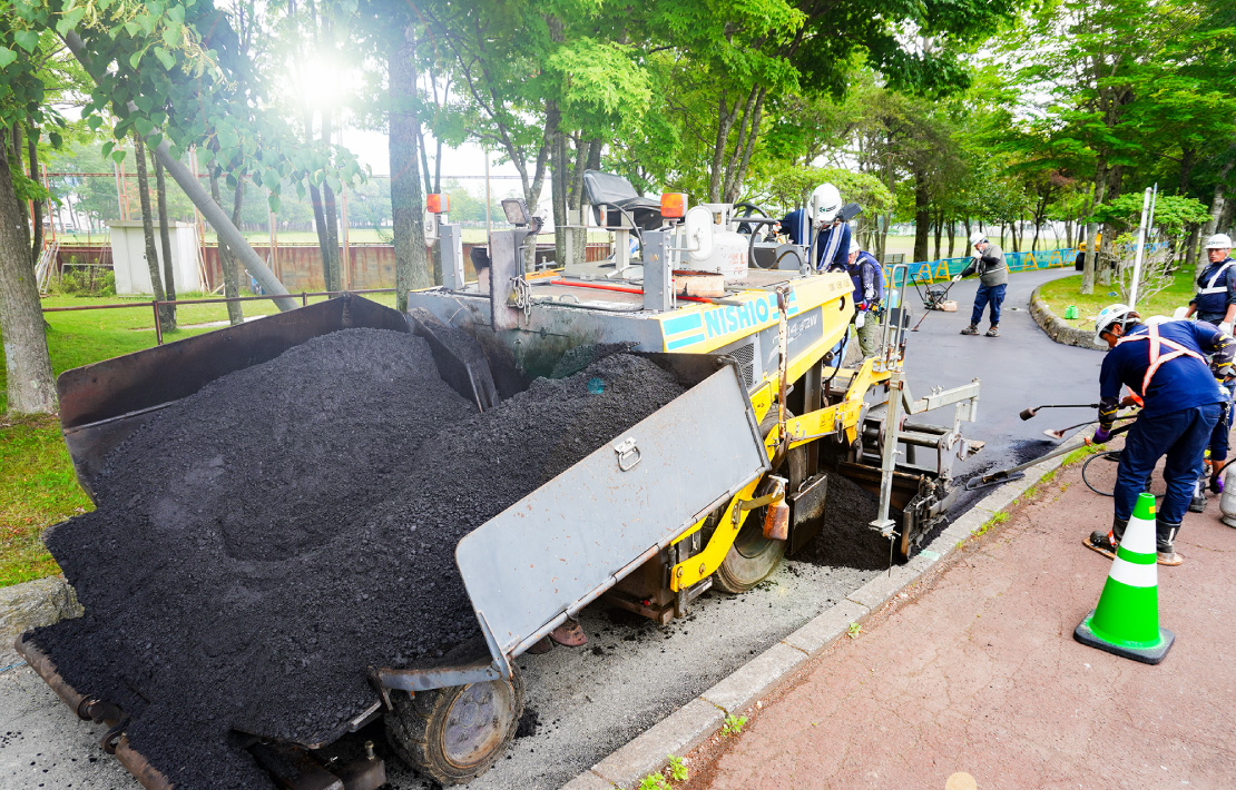 当社は、高い技術力を持つ職人が一丸となって施工を行っております。経験豊富な熟練の職人たちが、技術と厳選された材料を用いて、あらゆる舗装工事に対応いたします。